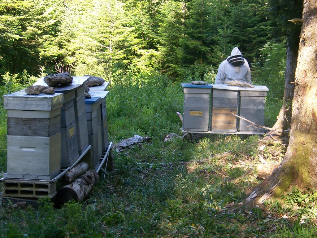 Quelques photos des ruches Voirnot au sapin, équipées du système beetracking. Aucune effraction constatée cette année !